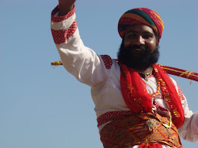 The closing ceremony was held in the Mela ground and was a feast for all eyes, camel processions with fierce looking Rajastanis their moustaches curling upwards and round their cheeks, brandishing their swords and wearing their finest jewellery.